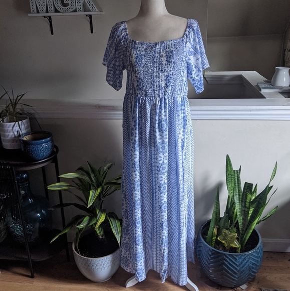Shein Dresses Shein Blue And White Maxi Dress Size Xl Poshmark